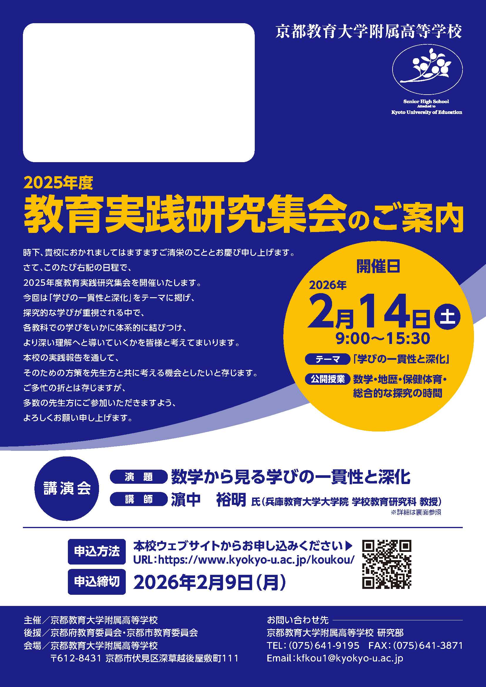 ※ なお、昼食につきましては、当校でのご用意はございませんので、参加くださる先生方各自でご準備いただくか、学校周辺のお店をご利用いただきますようお願い致します。